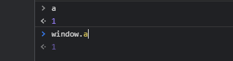 하지만 window.a 해도 값은 1입니다 그이유는 위에 설명했듯이 window 최상위 객체이기때문에 window 생략을하고 a값을 호출할수있습니다!
