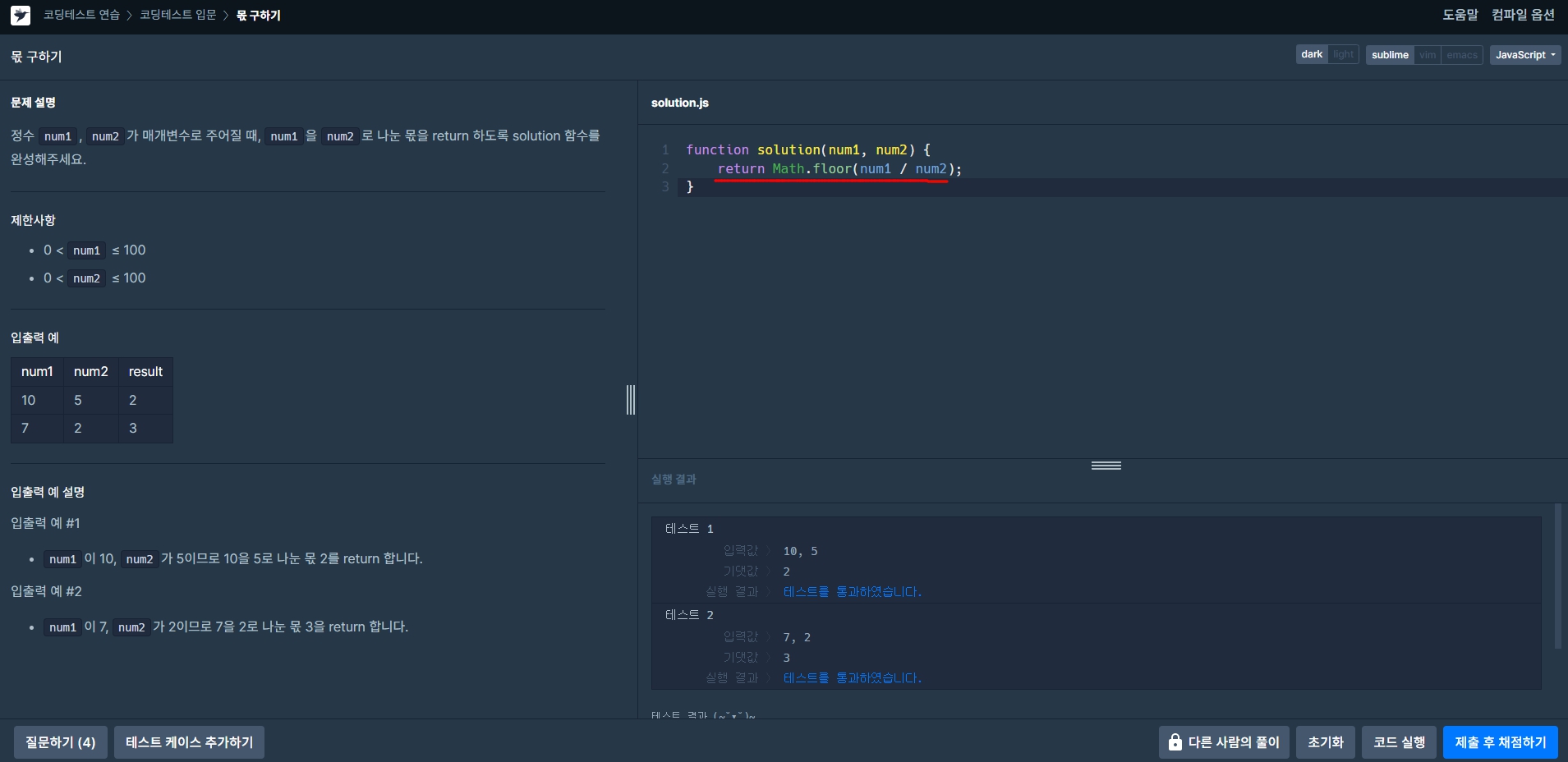 풀이 과정: 자바스크립트 수학 함수에 대한 이해도만 있으면 쉽게 풀음