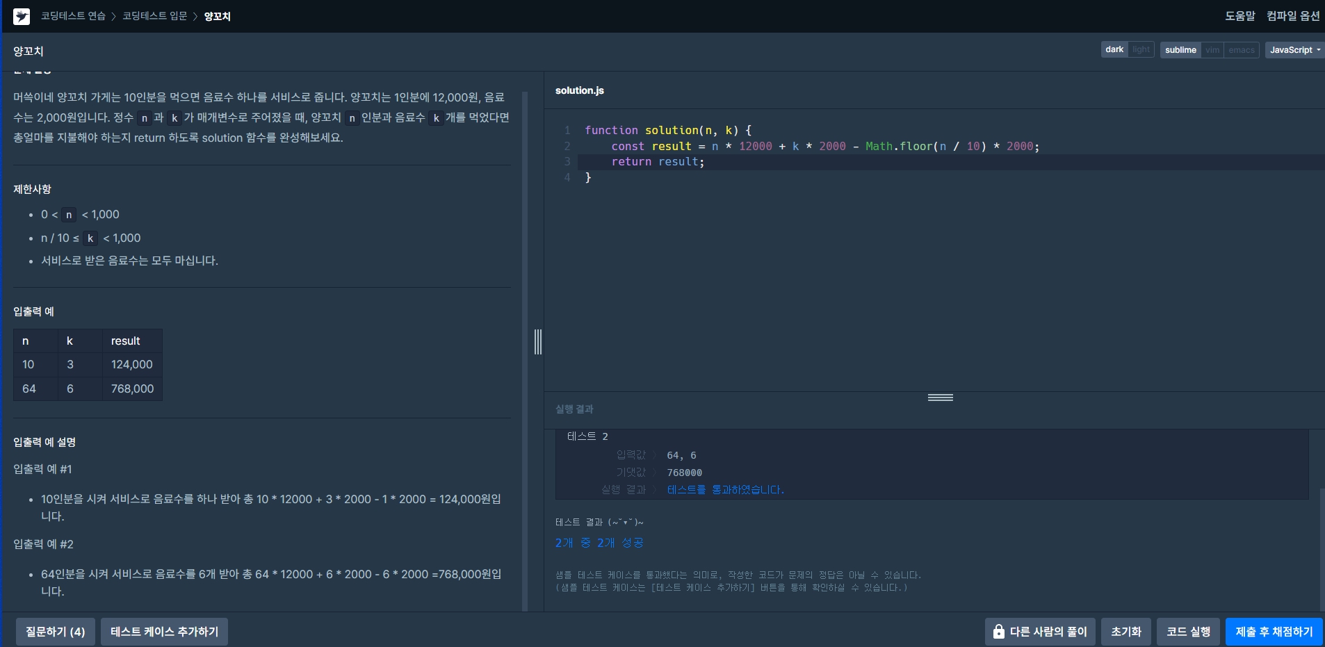 | 자바스크립트 알고리즘 5 일차 (프로그래머스) (4) | 2023.04.14 |