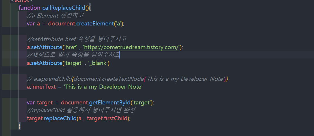 마지막으로 replaceChild 활용해서 새로은 정보를 넣어 보겠습니다
