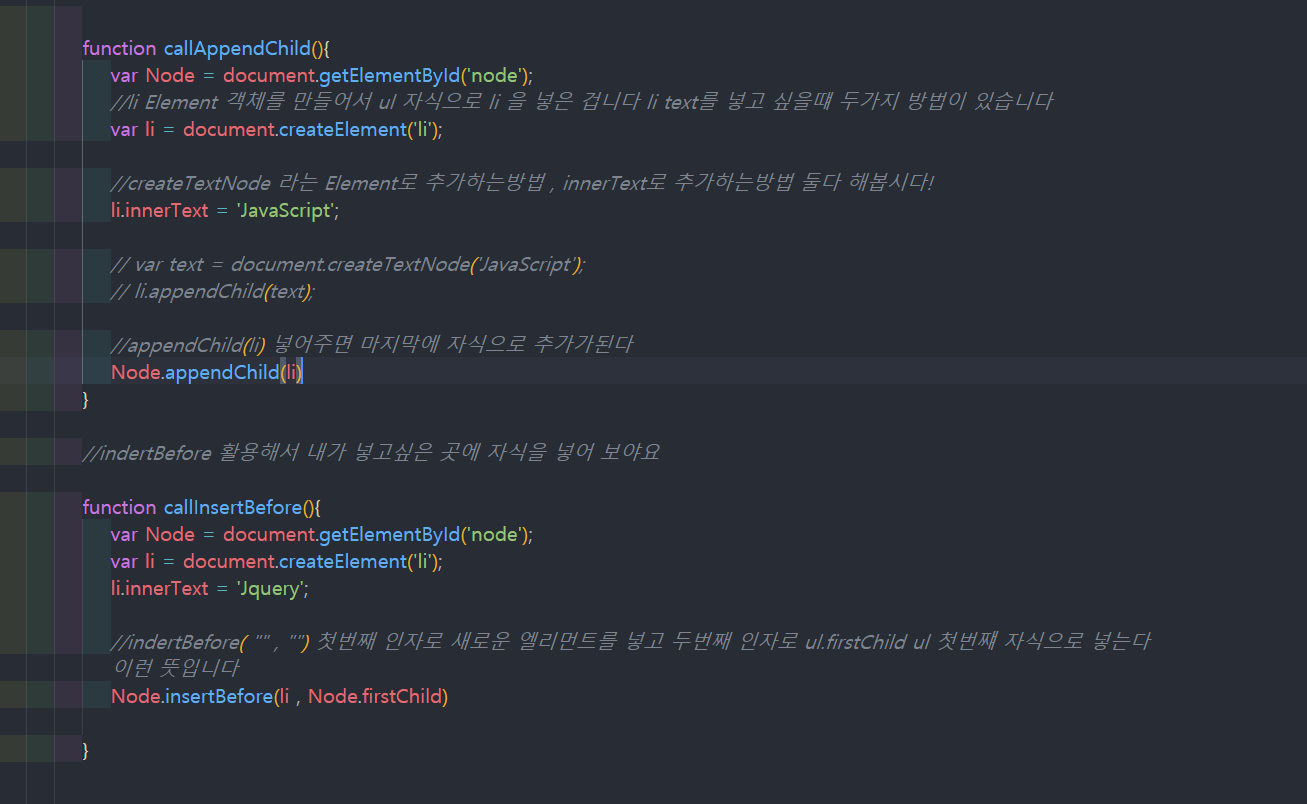 = 추가를할때는 대표적으로 appendChild 활용해서 마지막자식으로 추가하는것이고