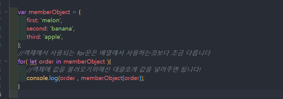 지금 제가쓴 for문은 가장 기본적인 방식이고 배열 과 객체를 저런식으로 반복문을 활요해서 값을 뽑아올수 있습니다!!!!