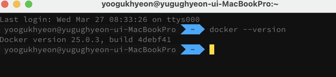 터미널에서 아래의 명령어로 도커의 버전및 설치 유무를 확인할 수 있다.
