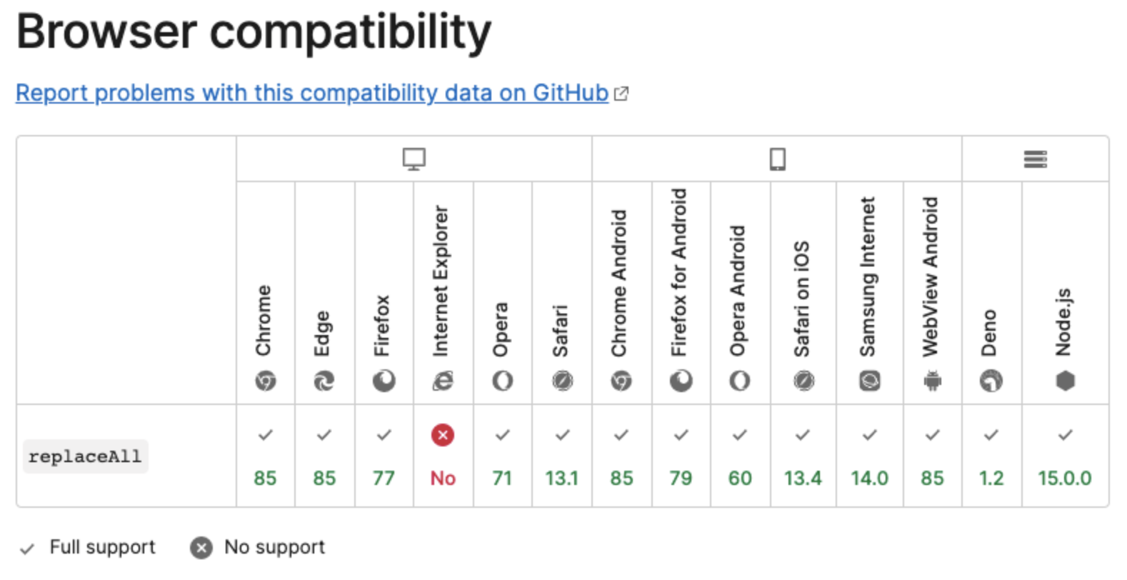 2. replaceAll ๋ธ๋ผ์ฐ์ ํธํ์ฑ ํ์ธ