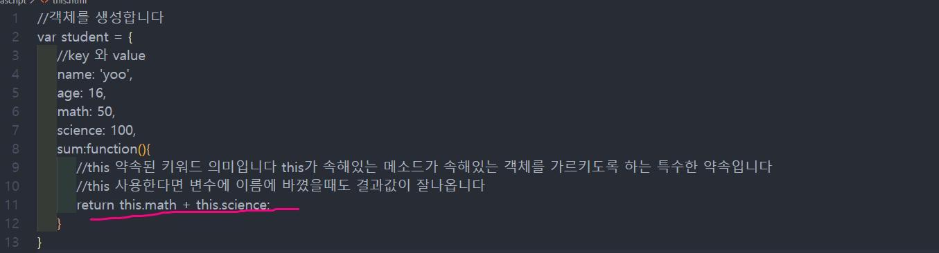 student 객체 안에 sum 함수도 넣을수있습니다