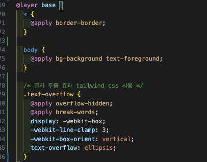 @layer base ์์ .text-overflow ํด๋์ค๋ฅผ ์ ์ฉํด์ค๋ค.