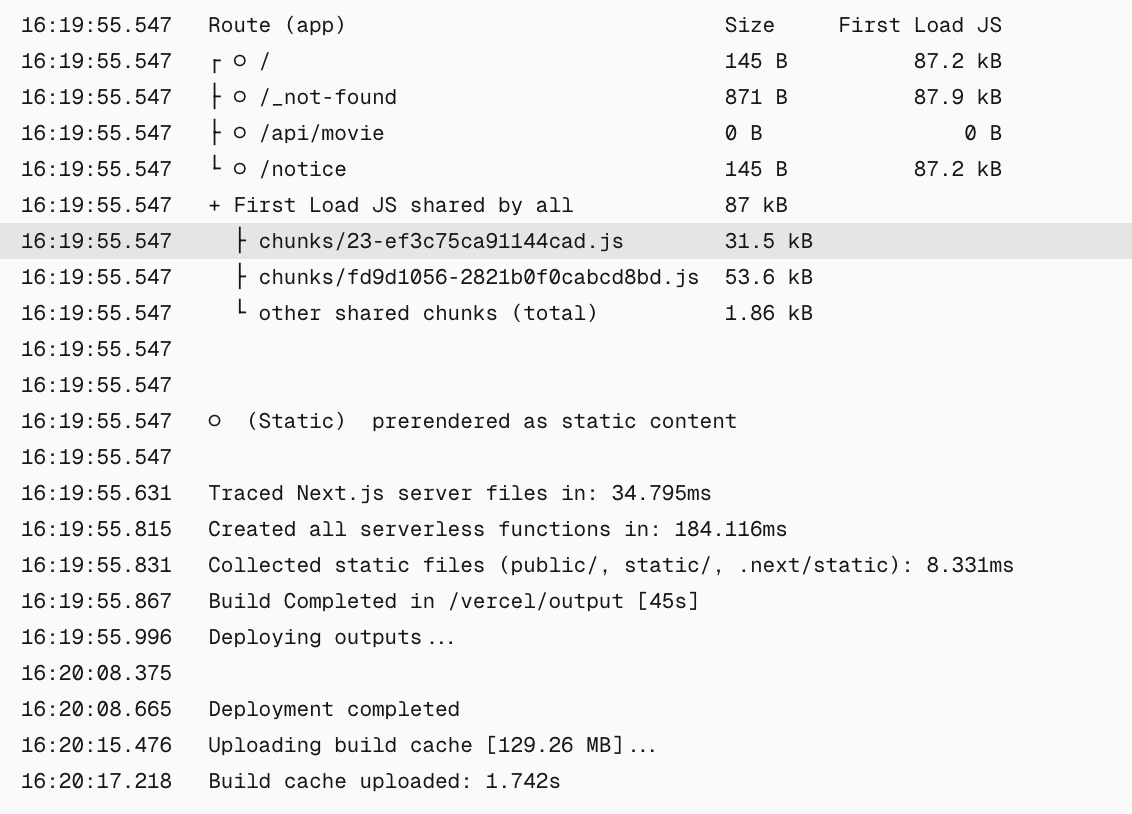 build ๊ณผ์ ์์ prisma generate ๋ช ๋ น์ด๋ก schema๋ฅผ ์ต์ ํ ํด์ฃผ๋ฉด์ Vercel ๋ฐฐํฌ๋ฅผ ์๋ฃํ์ต๋๋ค.