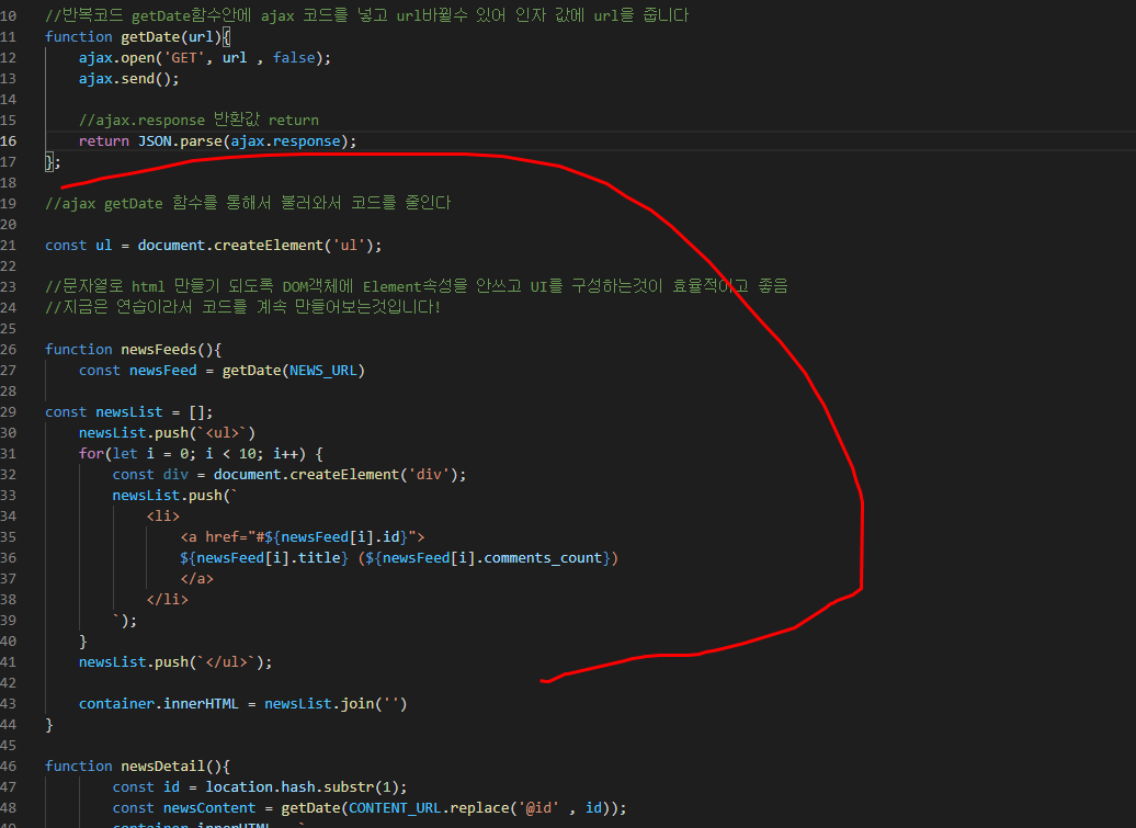 NewsList 빈 배열을 만들어서 push로 문자열을 구현했습니다!