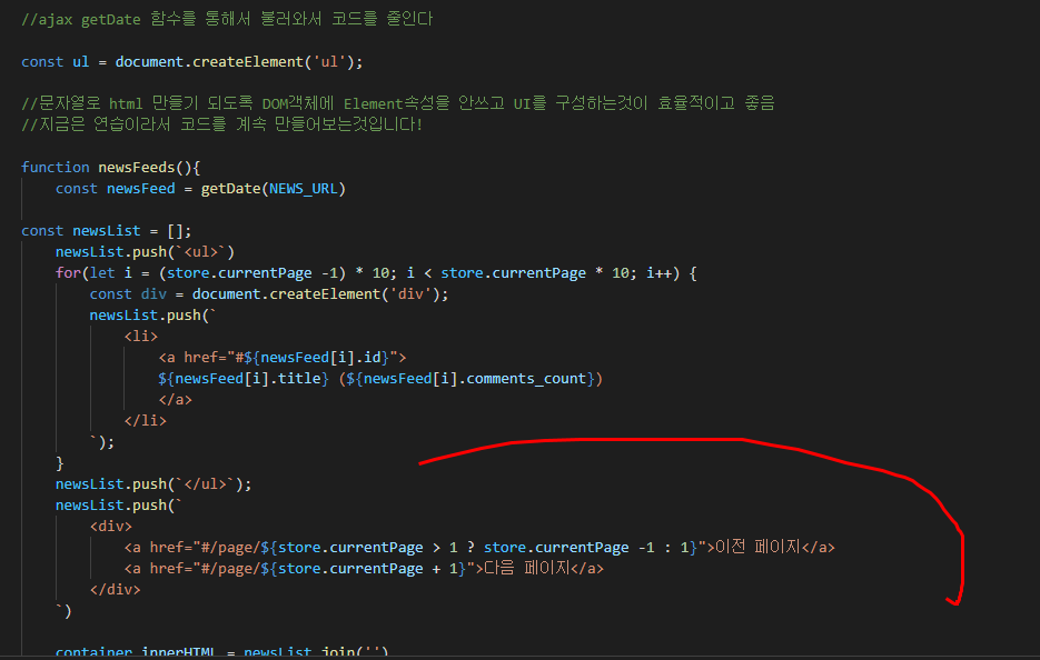 일단 Element 요소로 UI를 만드는 것은 비효율적이기 떄문에 문자열을 통해서 UI를 구현하고 라우터만들어 페이지 이동을하고 메인에 paging 을 구현했습니다!