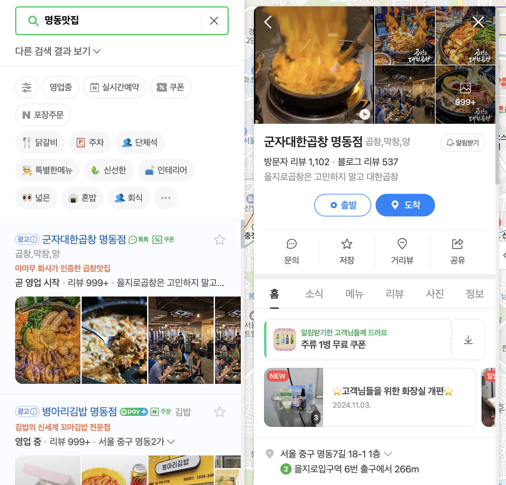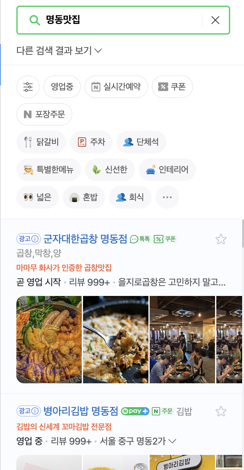 1. 네이버 지도에서 키워드 검색