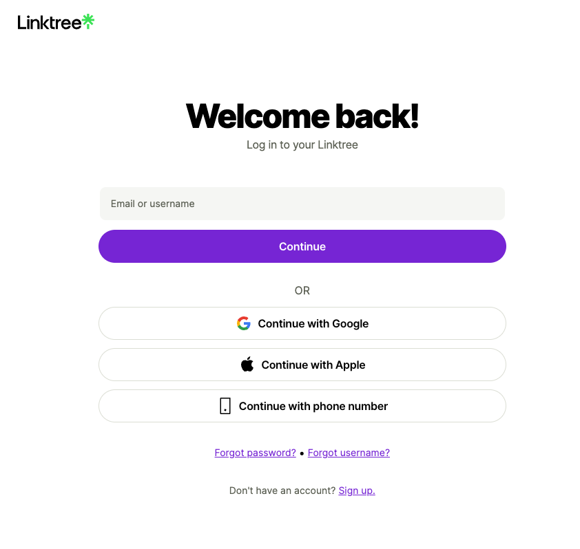 Linktree 회원가입하시고 로그인하셔도 되고 구글, 애플 계정으로 로그인하셔도 됩니다.