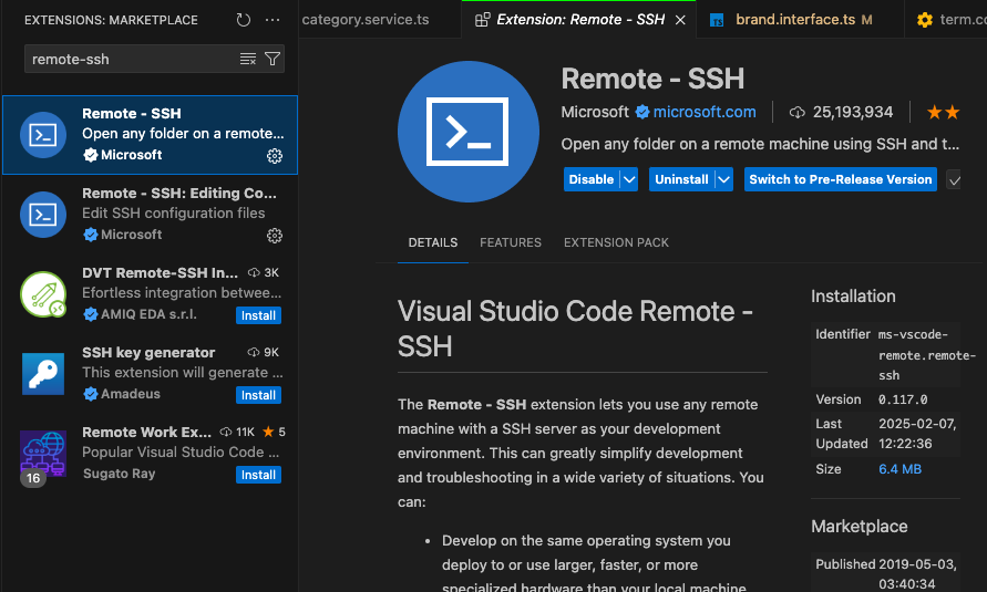 Remote-SSH 검색창에 입력하고 설치를 합니다.