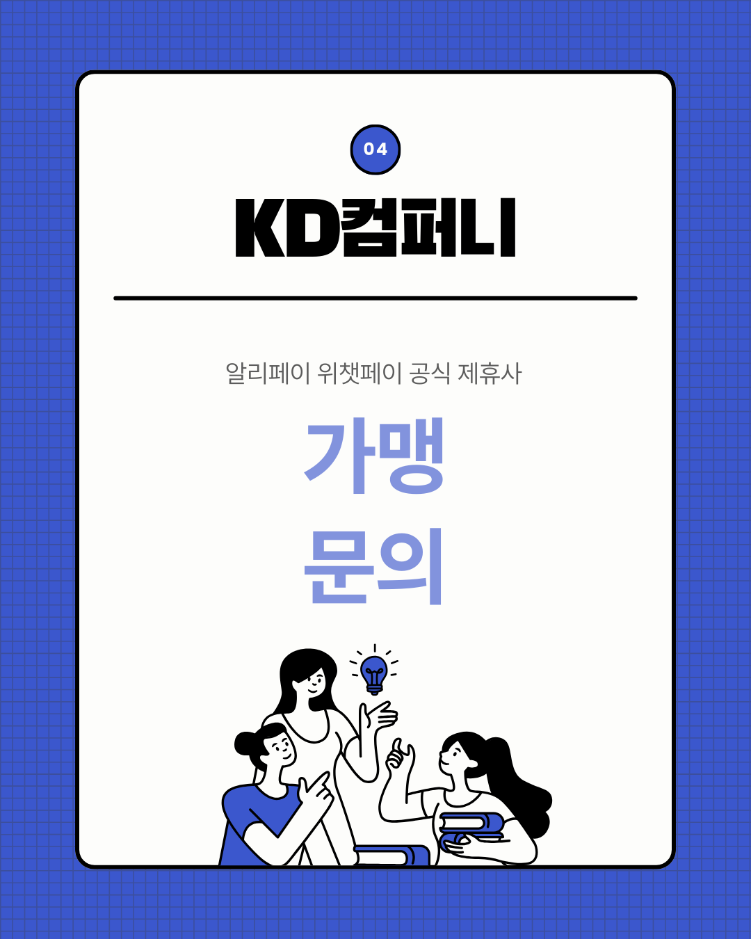 하지만 현재 케이디컴퍼니와 같은 공식 제휴사를 통하면 설치비, 가맹비, 가입비가 모두 0원인 상태로 시작할 수 있습니다.