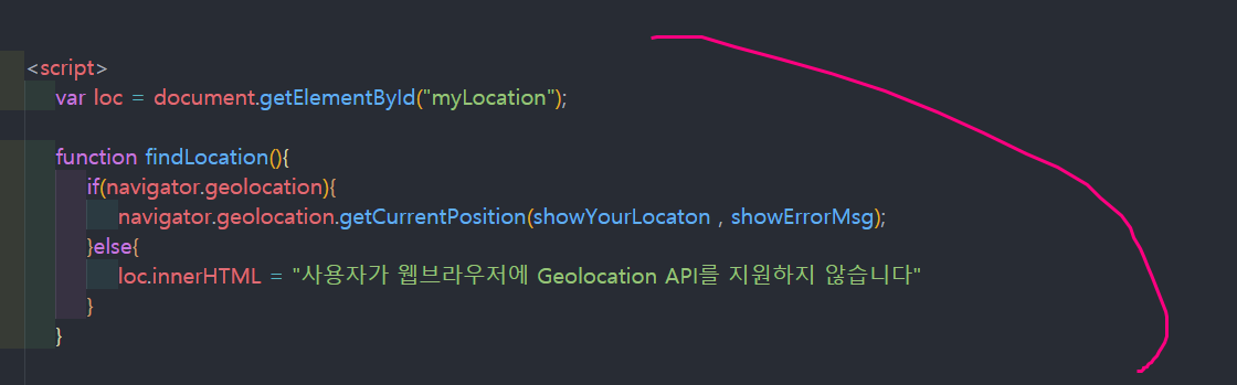 findLocation 함수에 geolocationAPI를 호출 합니다!