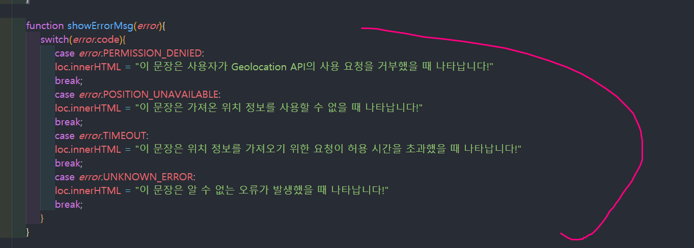 여기는 error 처리를 하기위해서 switch 문을 활용해봤습니다 if문보다 가독성이 좋기 때문에 한번 써봤습니다!