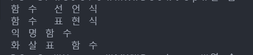 그리고 함수는 함수 선언식, 함수 표현식으로 나눠질수 있습니다.
