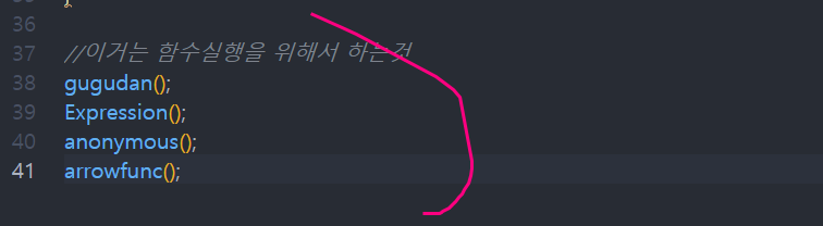 이렇게 함수에 중괄호는 매개변수가 들어가는자리이고요 대괄호 안에는 함수에 작동하는 값들이 들어가는곳입니다!