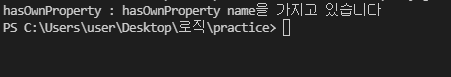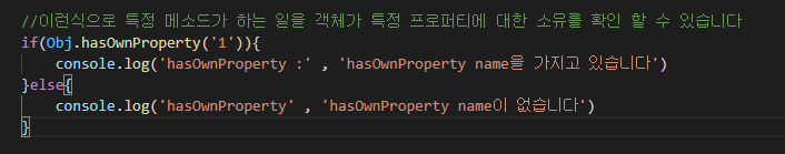 hasOwnProperty 메소드를 쓰는 이유는 특정 Property를 가지고 있는지 없는지를 나타내서 블리언 값으로 반환하는것을 알기 위해서 사용합ㄴ디ㅏ.