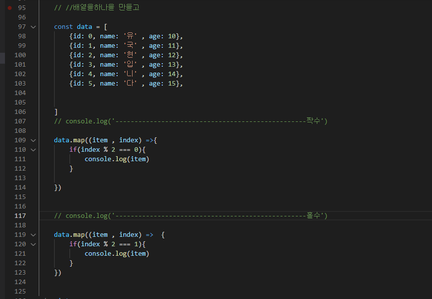 이거는 가장많이 쓰니는 for문 이였습니다 map() 함수를 써볼께요